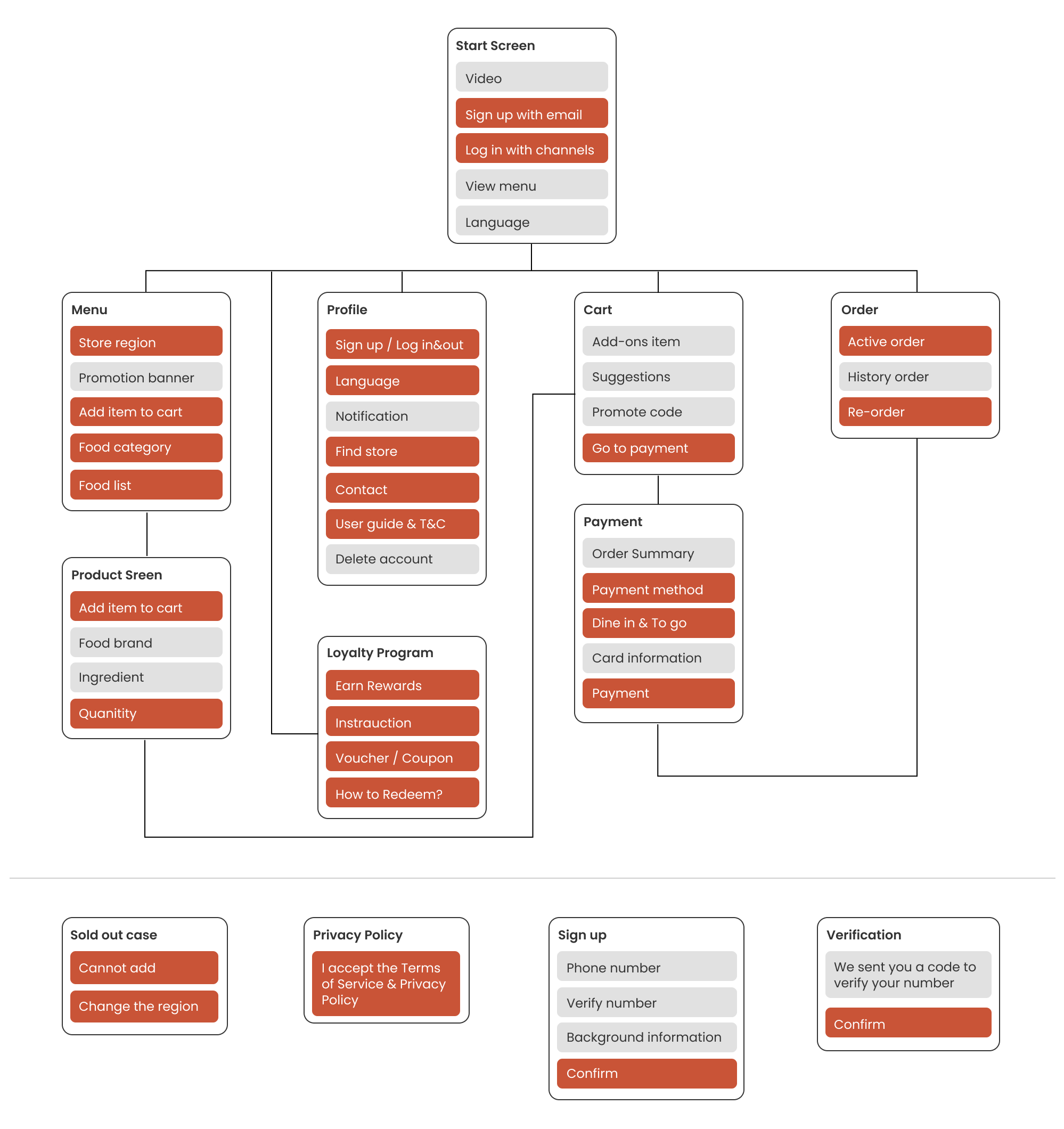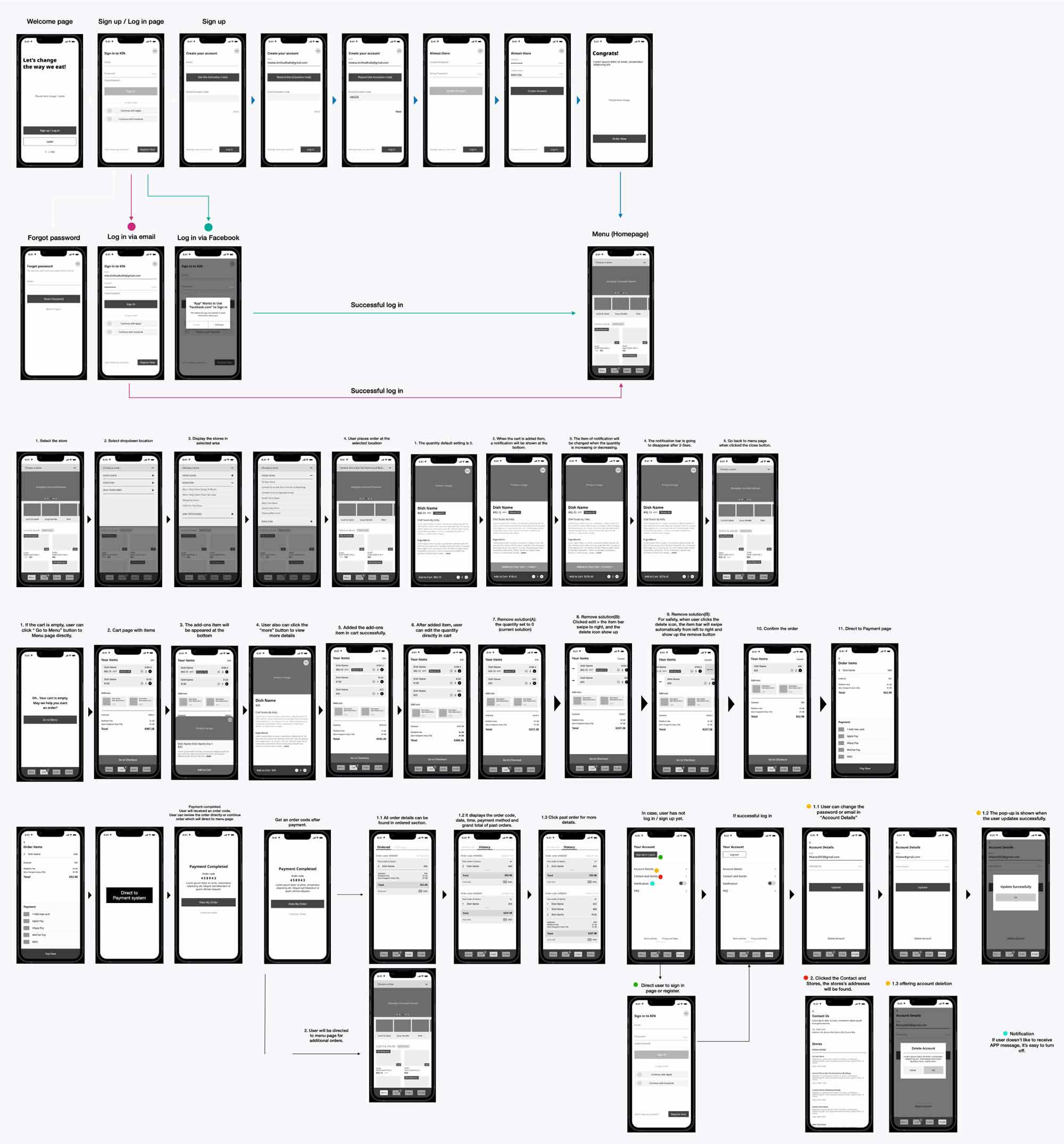 Since I wan't very familiar with this industry, I began with some secondary research to gain a better understanding of the market trends. To make sure that my decisions moving forward in the process are user-centered, I wanted to have a clear understanding of who KIN users are. I then conducted interviews to learn more about the different experiences people have had with ordering food.